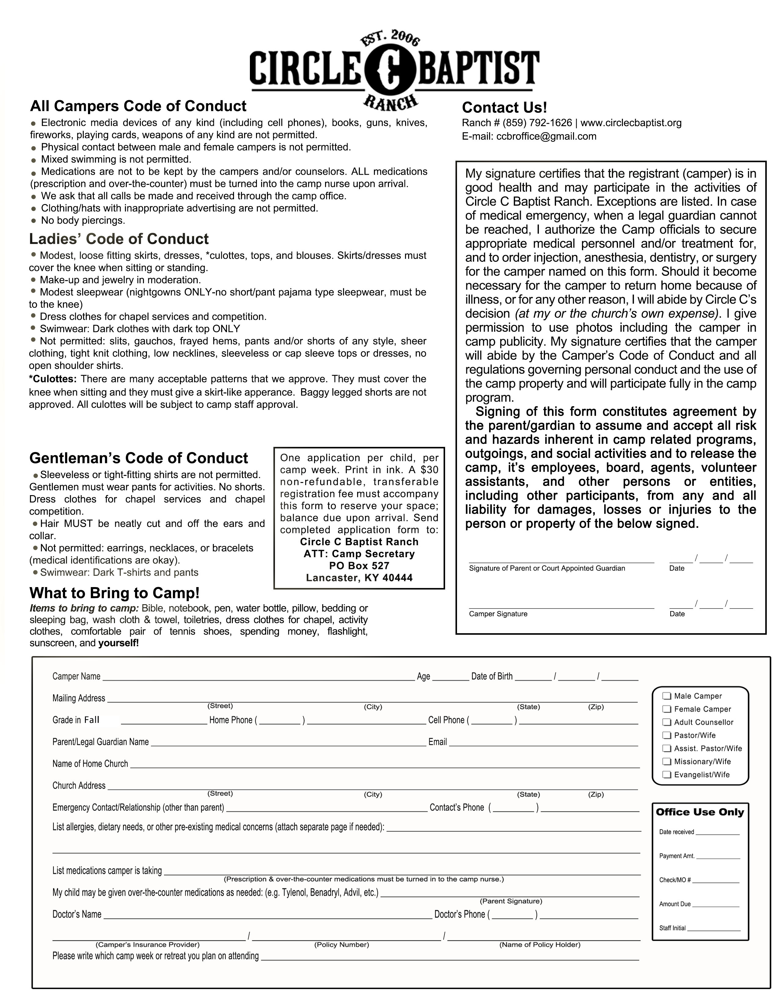 Those who register online must bring a completed wavier to camp with them.